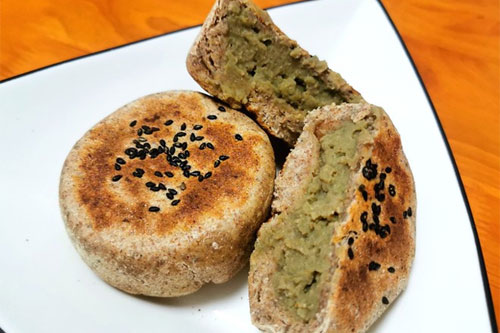 4、不粘锅刷油,文火,小火煎至两面焦黄,四周最好立起来滚几圈受热均匀确保熟透即可。